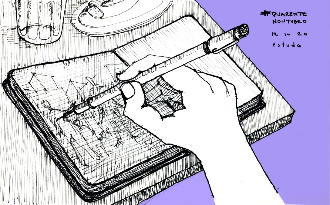 Tenho a impressão de que estas condições contribuam não só para o citado menosprezo pelo mundo da imagem como um campo do conhecimento como também à própria imagem (e, em particular, o desenho), como um meio de elaboração do conhecimento. Quem tem o hábito de desenhar, contudo, mesmo que descompromissadamente, sabe o quanto o exercício do traçado de formas sobre o papel é ele próprio um saboroso processo de diálogo com as nossas próprias ideias, equilibrando disciplina, liberdade, criatividade e técnica. Desenhos são, por natureza, não lineares, repletos de idas e vindas, tornando síncronos pensamentos variados — constituem uma forma de pensar radicalmente distinta da escrita, que por mais fragmentada que seja, almeja sempre uma coesão linear e lógica. O ato de desenhar é sempre analógico.