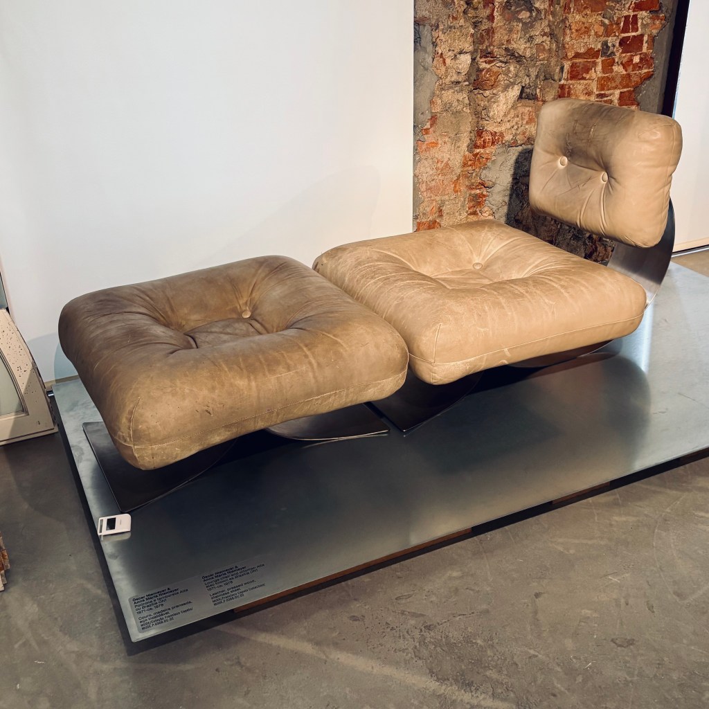 Uma peça em particular, contudo, foge dessa regra: trata-se de um exemplar da Poltrona Alta, desenhada por Anna Maria e Oscar Niemeyer. Embora não sejam apresentadas as condições pelas quais a peça foi incorporada ao acervo, tudo indica que não só ela tenha sido bastante utilizada antes de sua chegada ao museu como ela foi encaminhada para exibição sem que houvesse ações conservativas mais intensas que apagassem as marcas de seu uso — e ainda que isso não seja propriamente uma novidade no campo da conservação e da restauração (no qual o cultivo da pátina já está consolidado há várias décadas), o fato da poltrona ser exibida tão “suja”, “encardida” e “avariada” nos permite imaginar que interações esta peça de design teve com sujeitos diversos, que afetos ela mobilizou e com quais práticas e rituais ela se conectou.